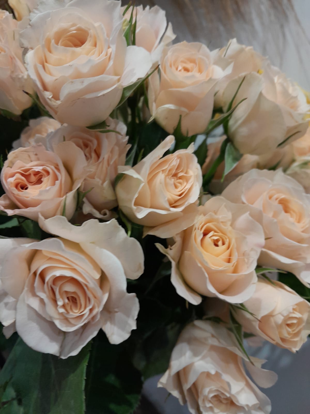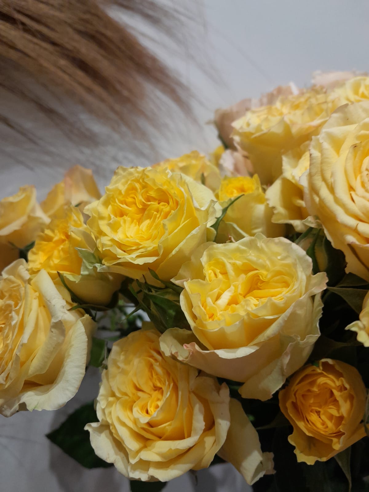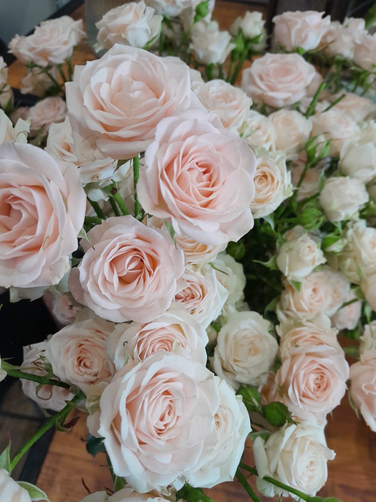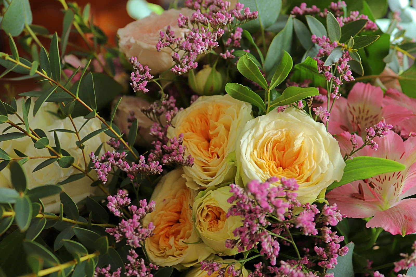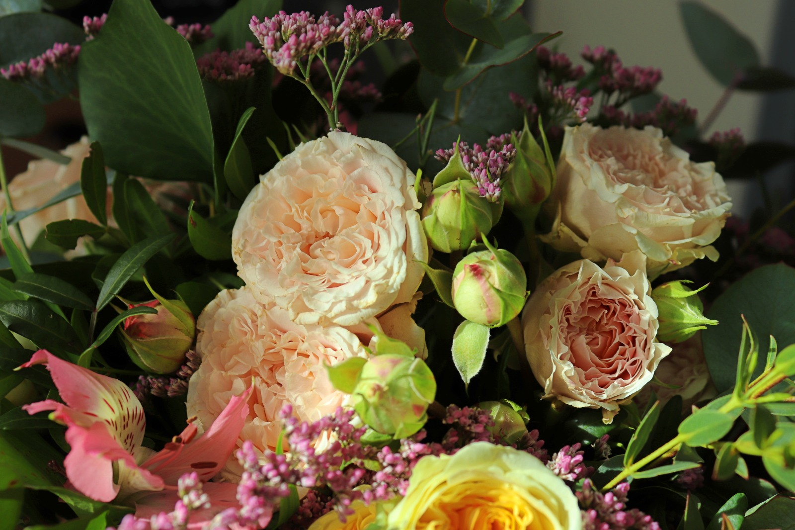 Chaque création est réalisée avec des fleurs fraîches, sélectionnées selon nos arrivages et la saisonnalité. Photo non contractuelle: les teintes seront respectées, mais chaque bouquet est unique.