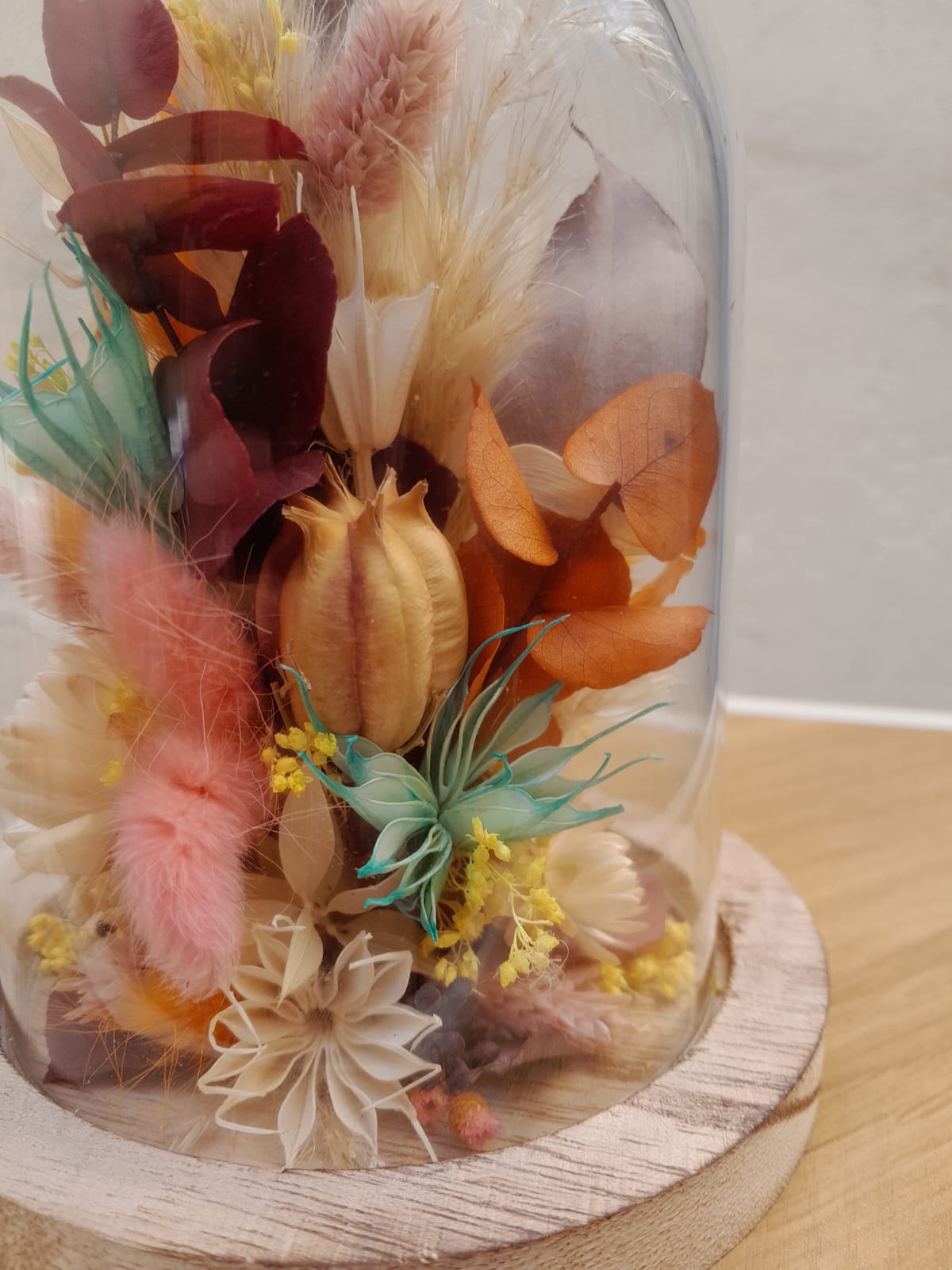 Profitez des créations en fleurs séchées durant des dizaines d'années. Il vous sera conseillé de les éloigner des rayons du soleil afin de conserver leurs couleurs d'origine.