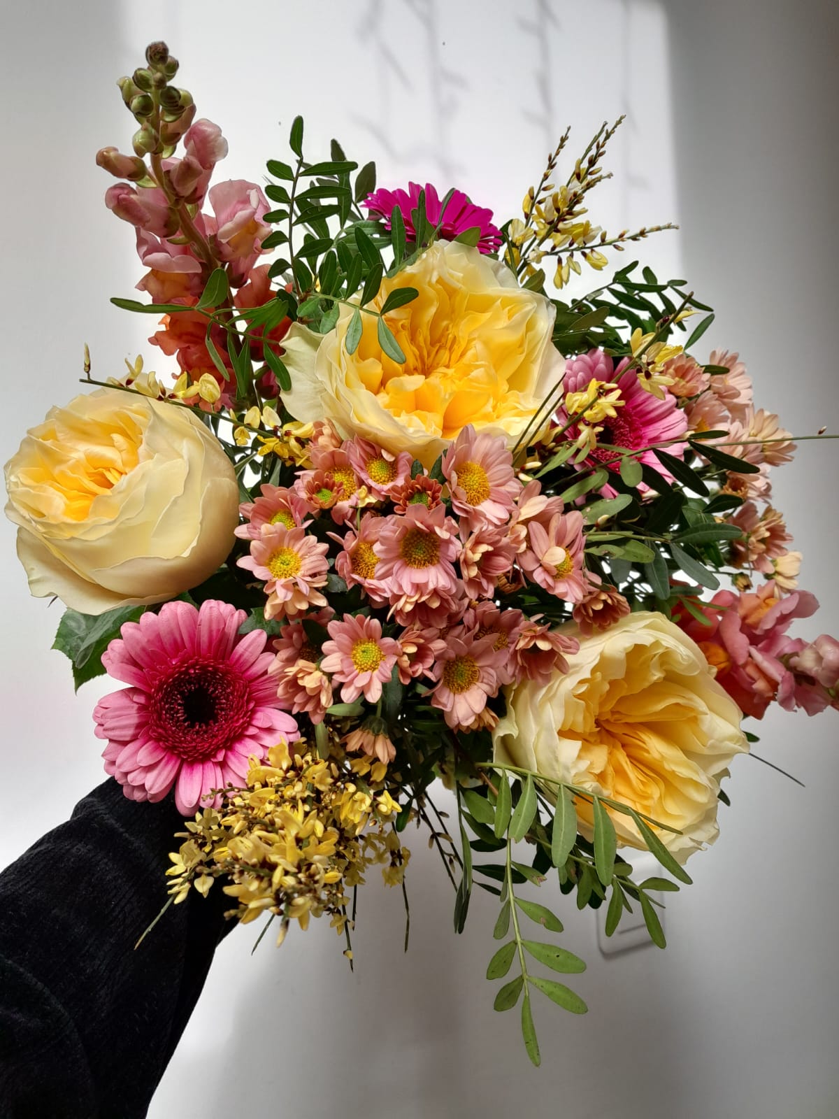Chaque création est réalisée avec des fleurs fraîches, sélectionnées selon nos arrivages et la saisonnalité. Photo non contractuelle: les teintes seront respectées, mais chaque bouquet est unique.