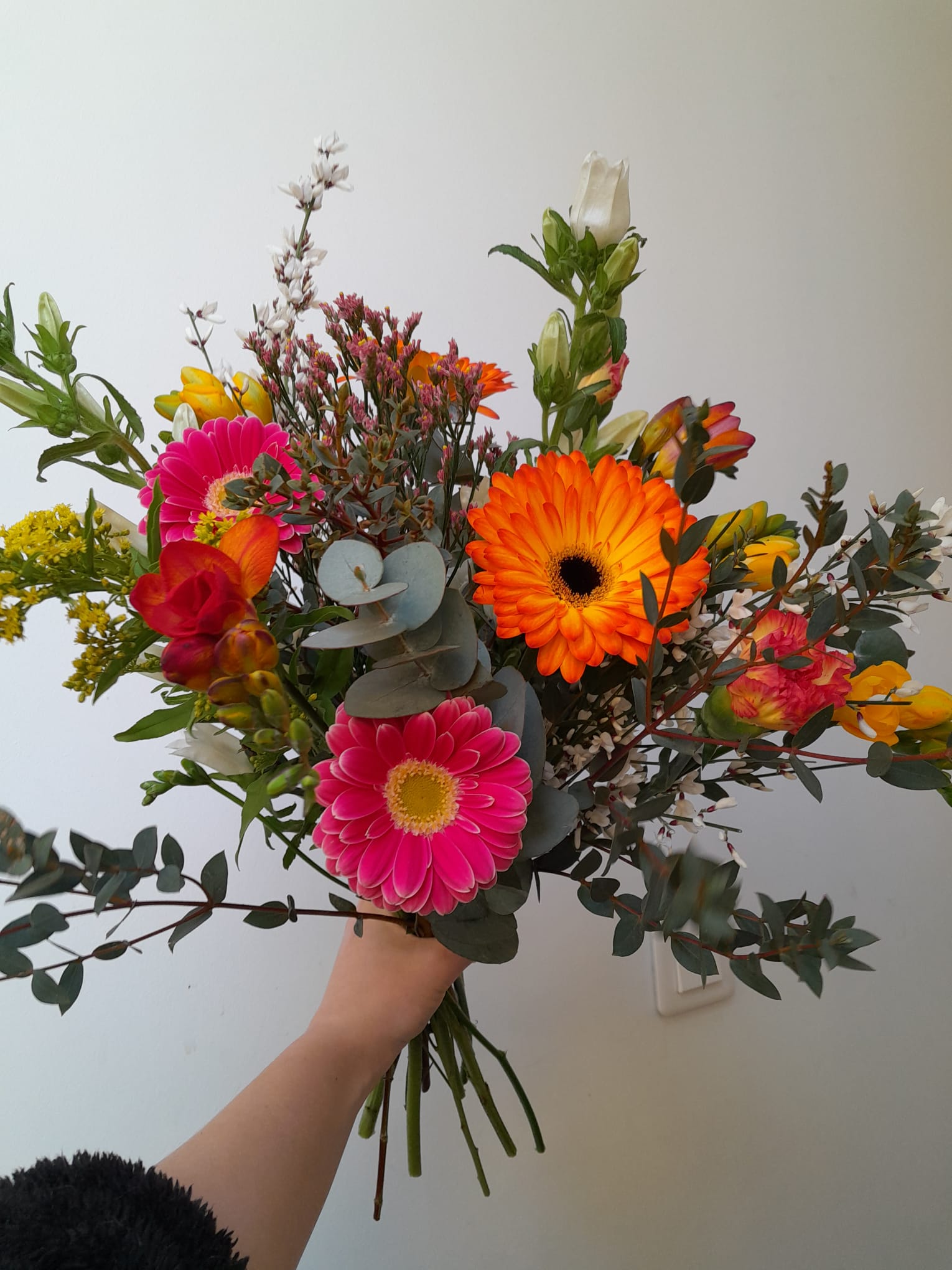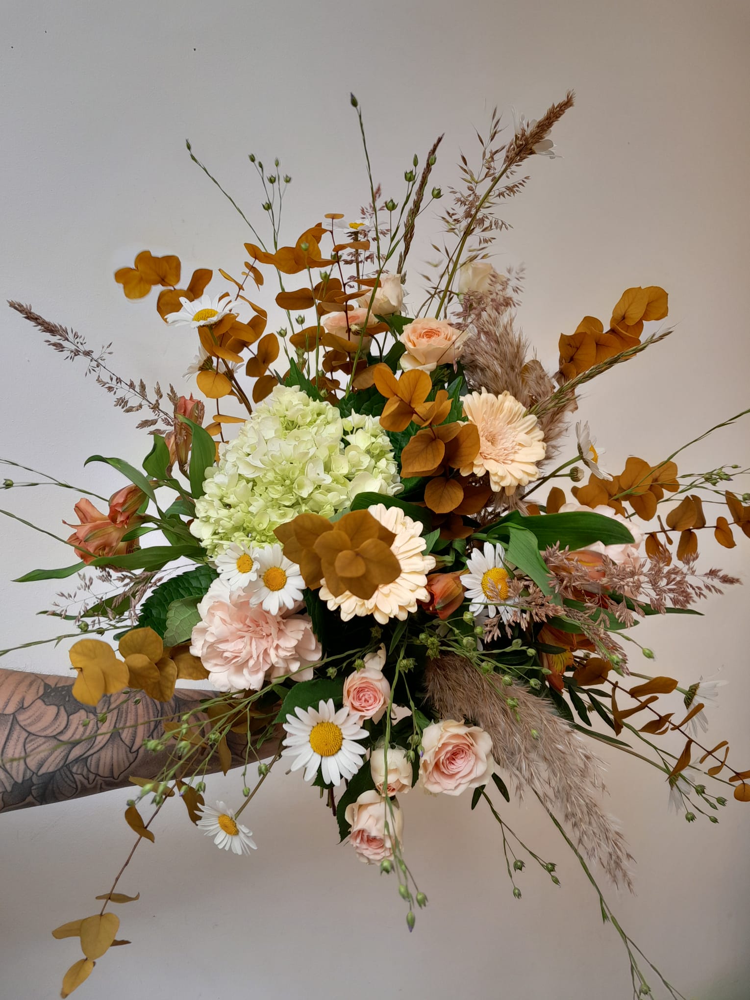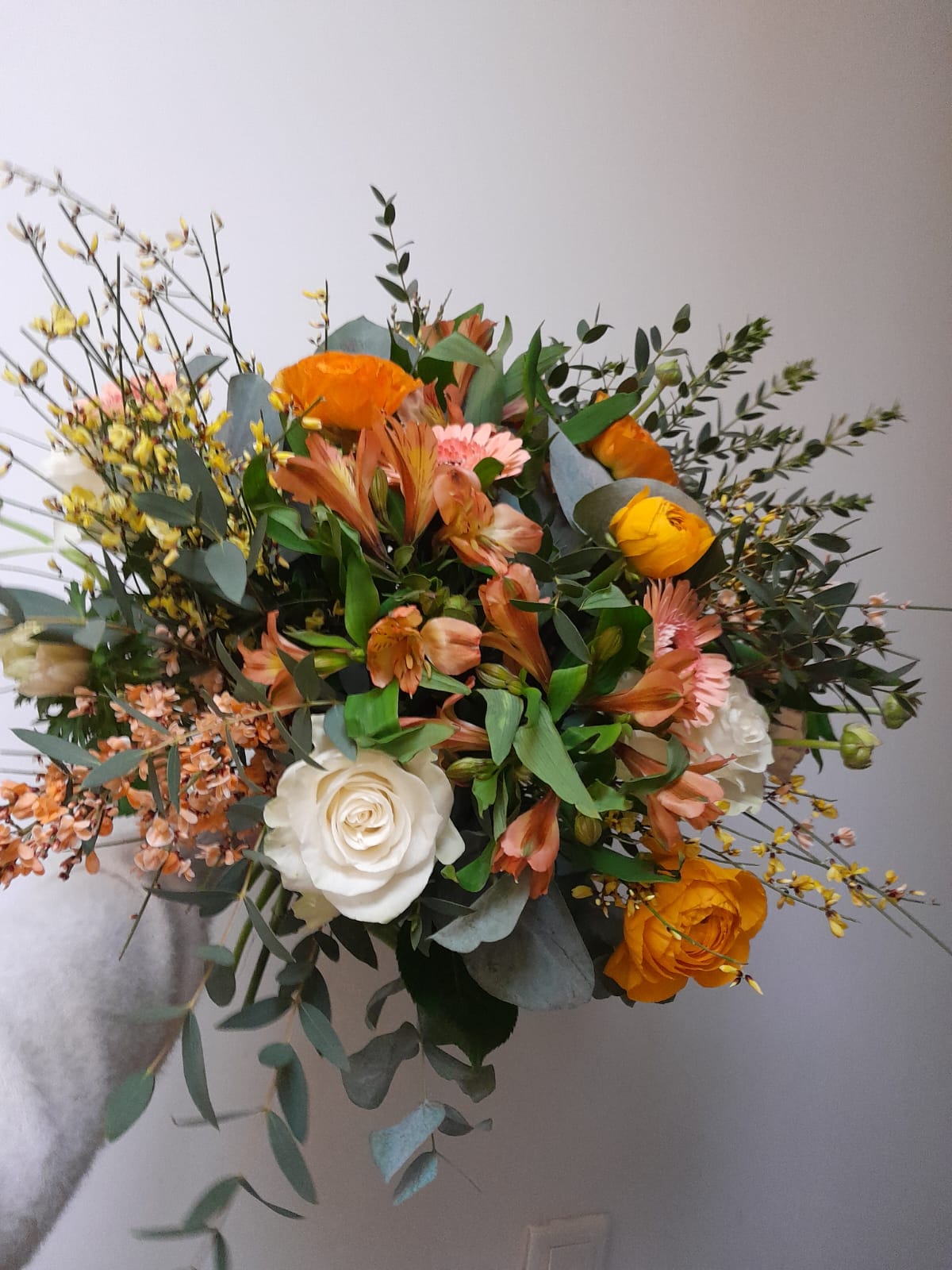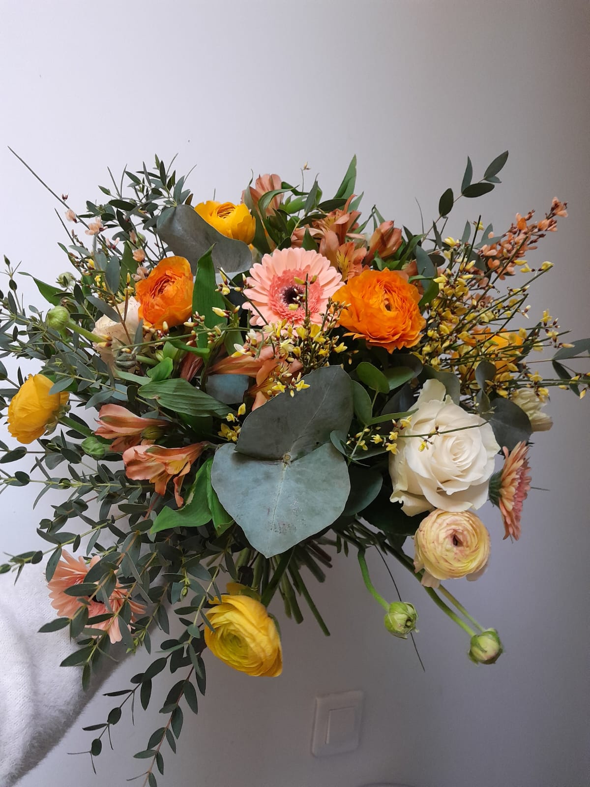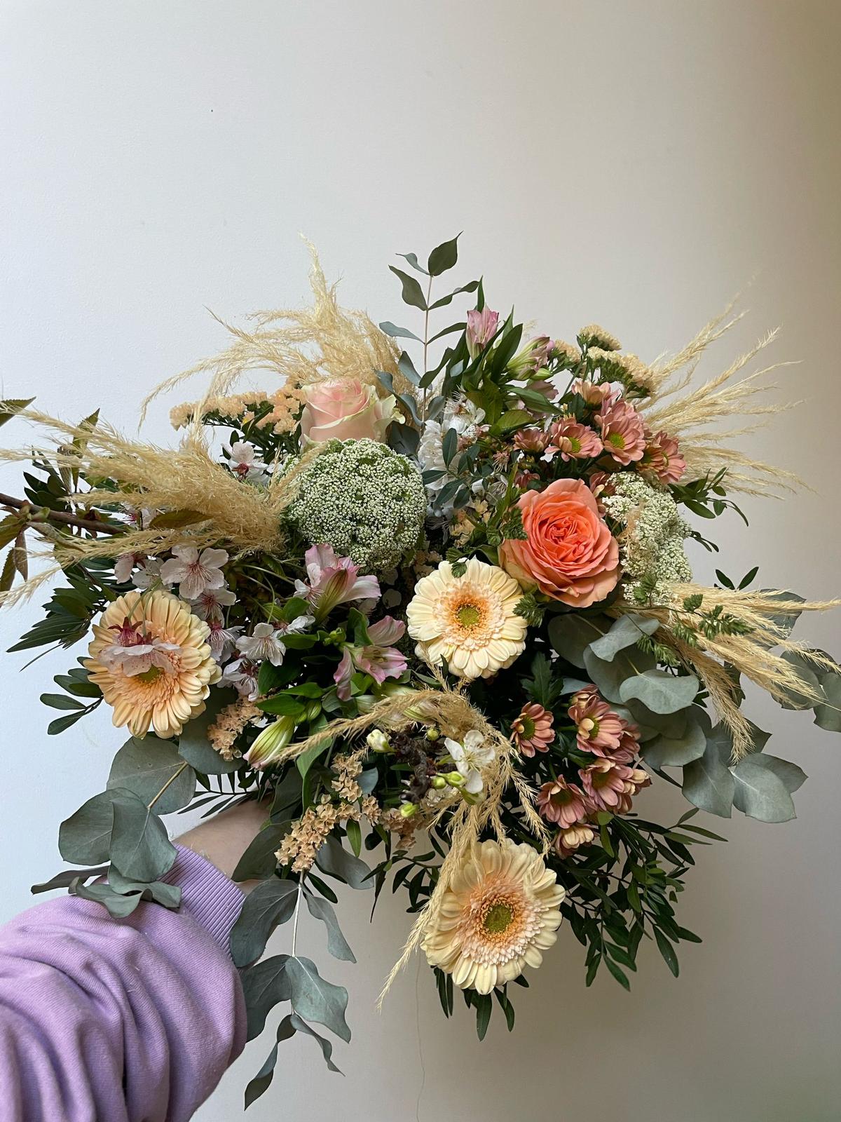 Chaque création est réalisée avec des fleurs fraîches, sélectionnées selon nos arrivages et la saisonnalité. Photo non contractuelle: les teintes seront respectées, mais chaque bouquet est unique.