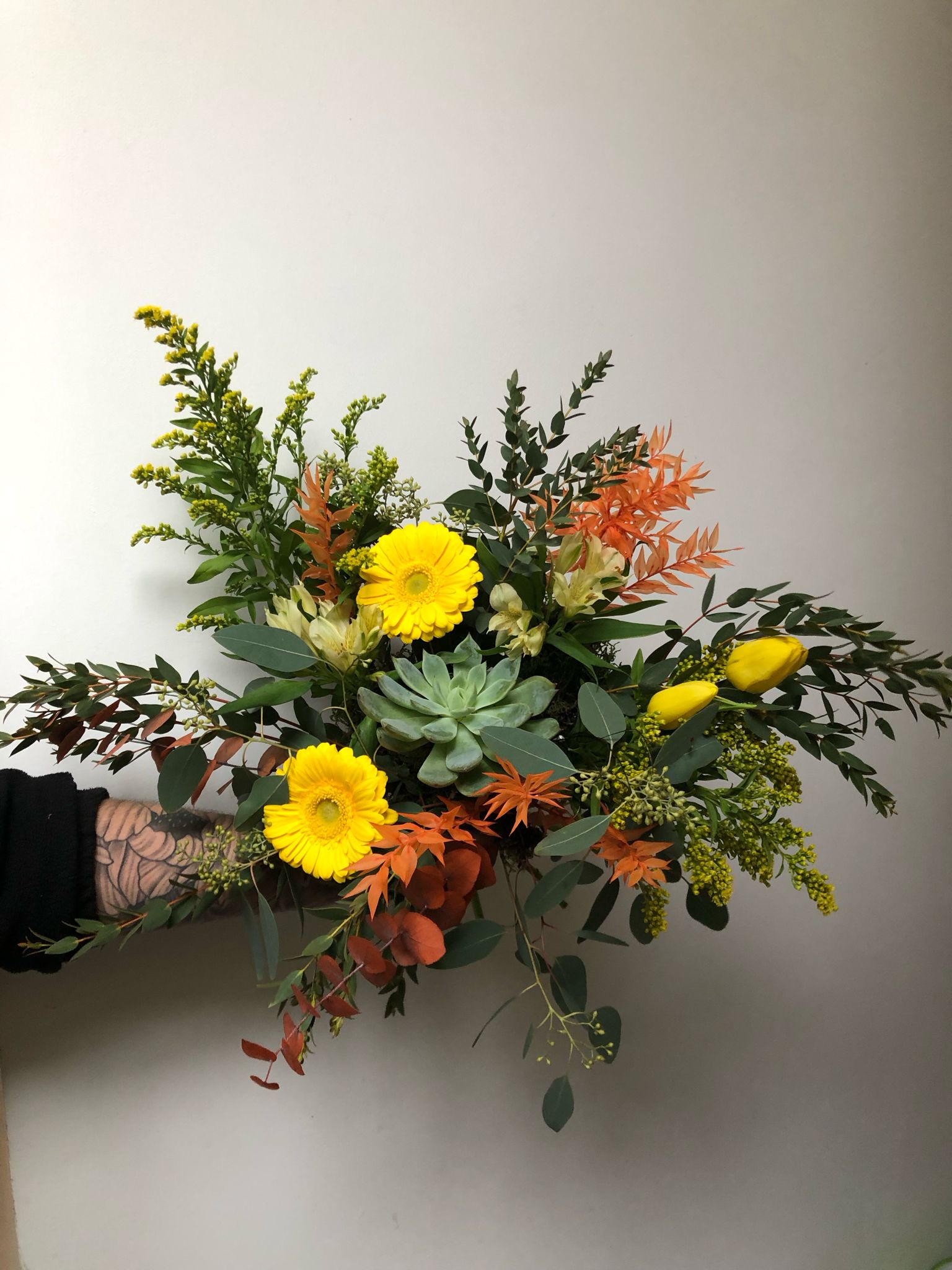 Bouquet avec plante intégrée (une fois votre bouquet passé, vous pourrez replanter votre plante qui se trouve à l'intérieur du bouquet) à partir de 30€.