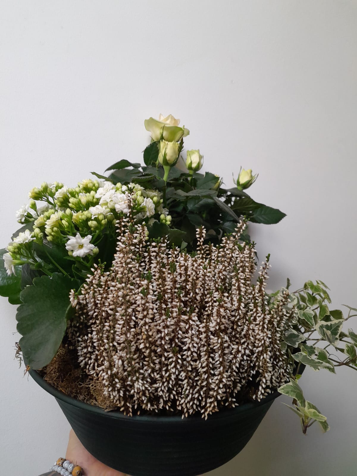 Plantes de saison pour le cimetière dans une coupe plastique ou vannerie.