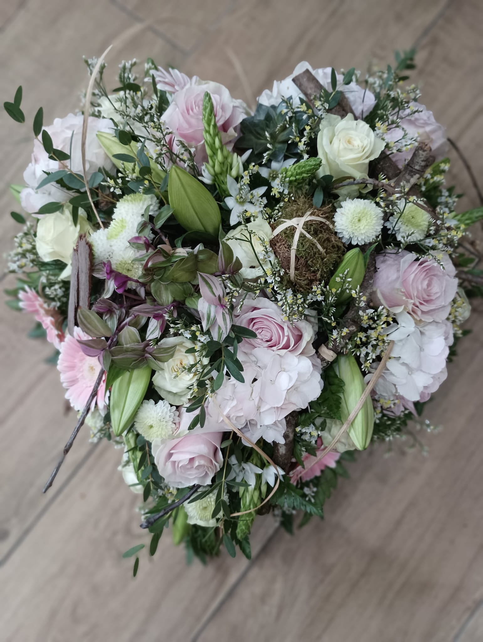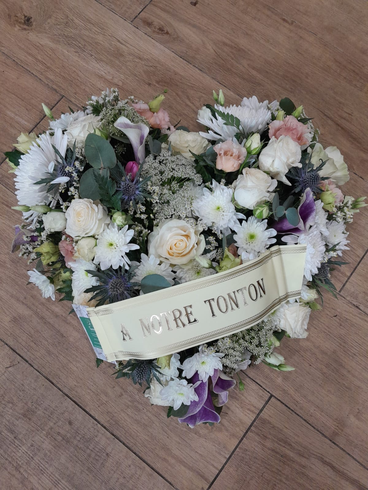 Coeur ou carré fleuri à partir de 325€. Diamètre 40 cm. Couleurs au choix.