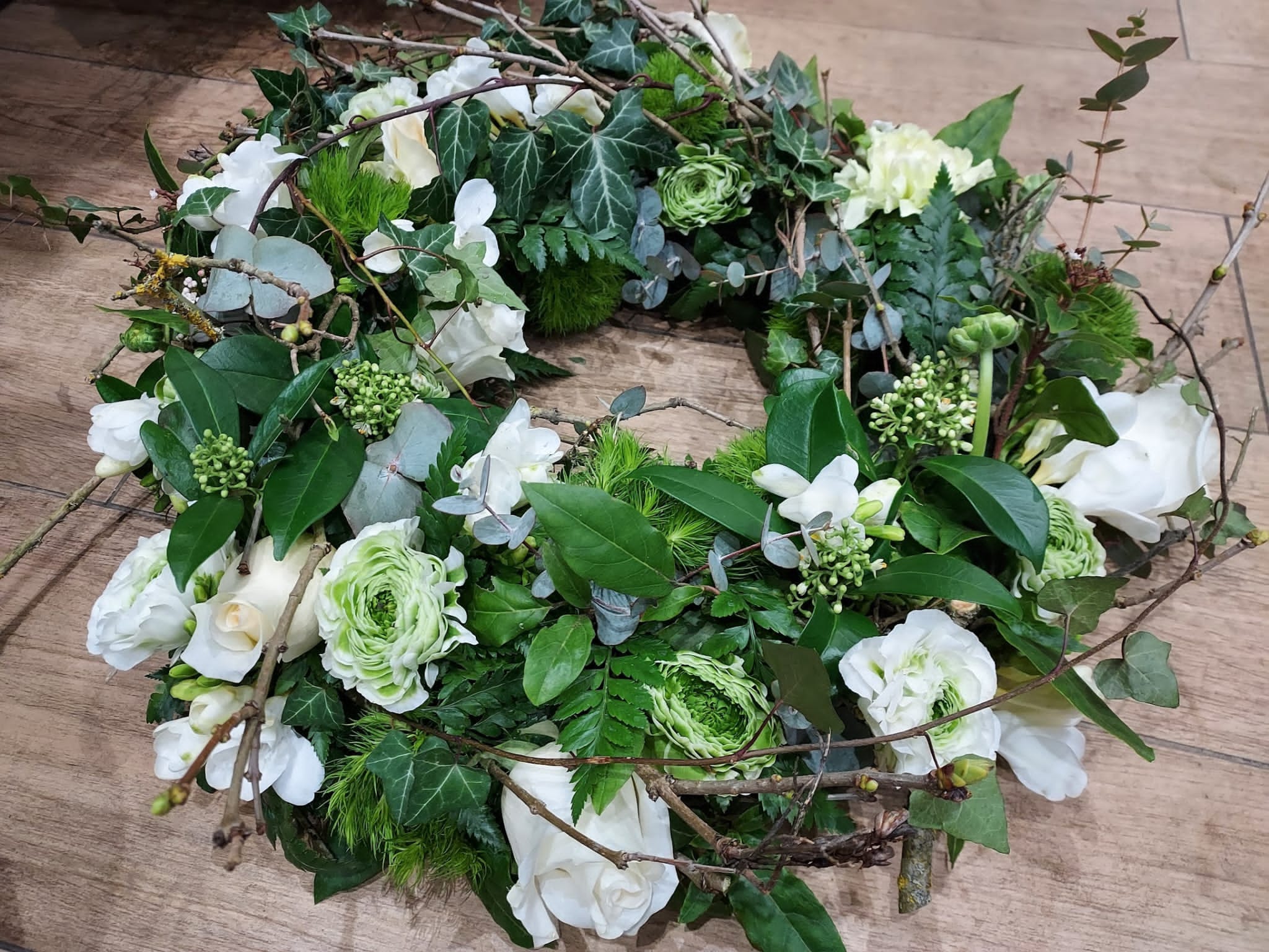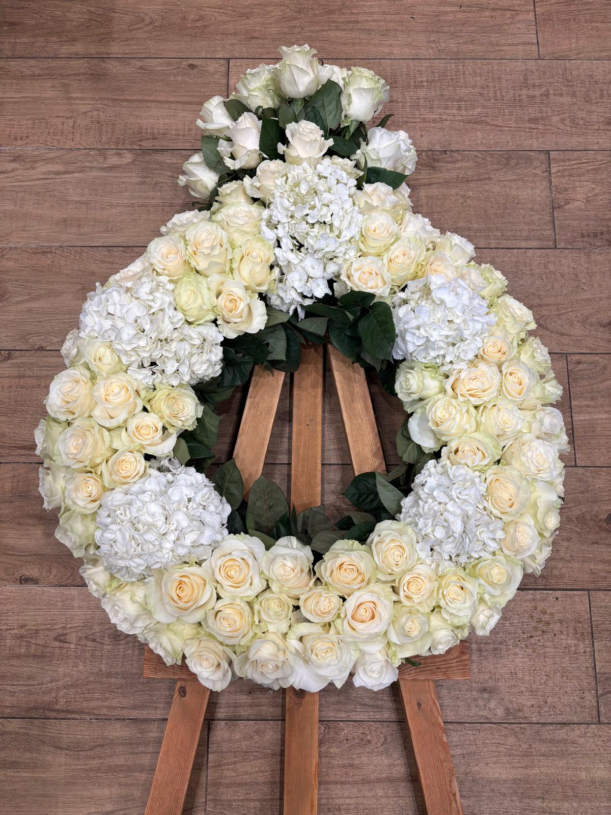 Couronne d'une taille de 50 cm de diamètre à partir de 450€. Si vous souhaitez une couronne de roses uniquement, le prix est de 600€ Couleurs au choix.