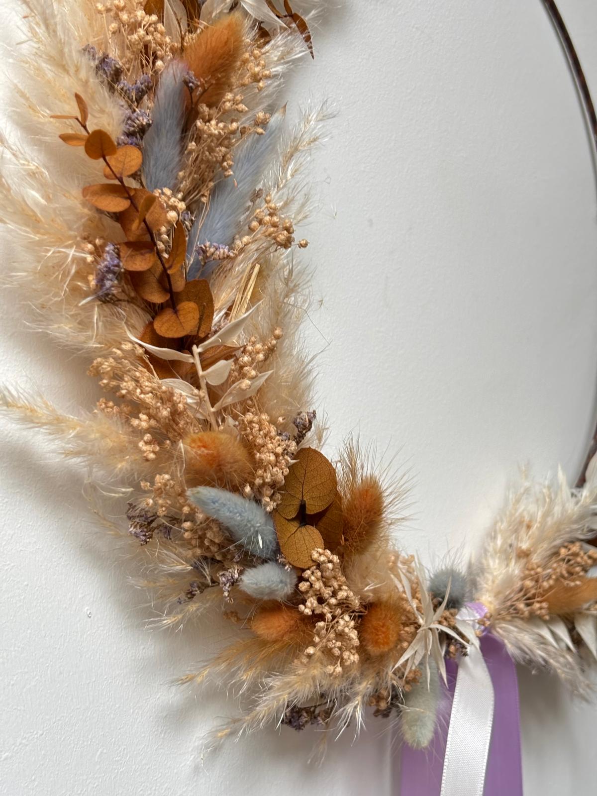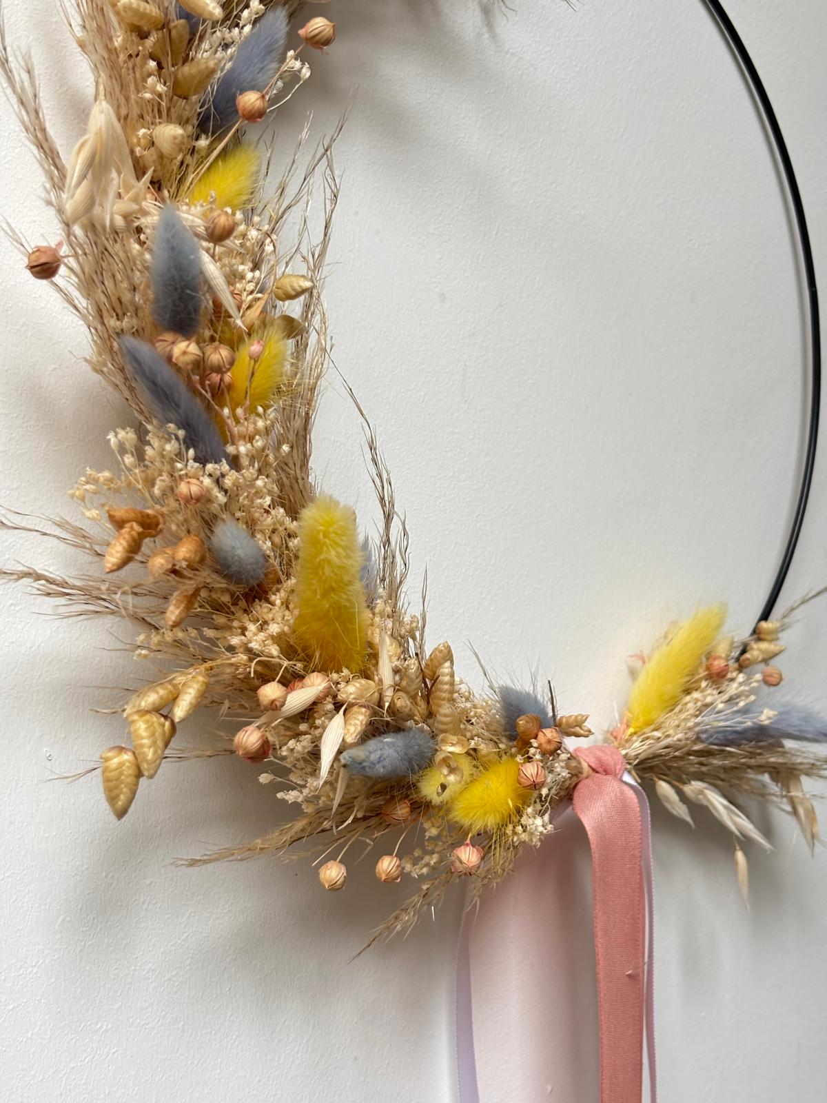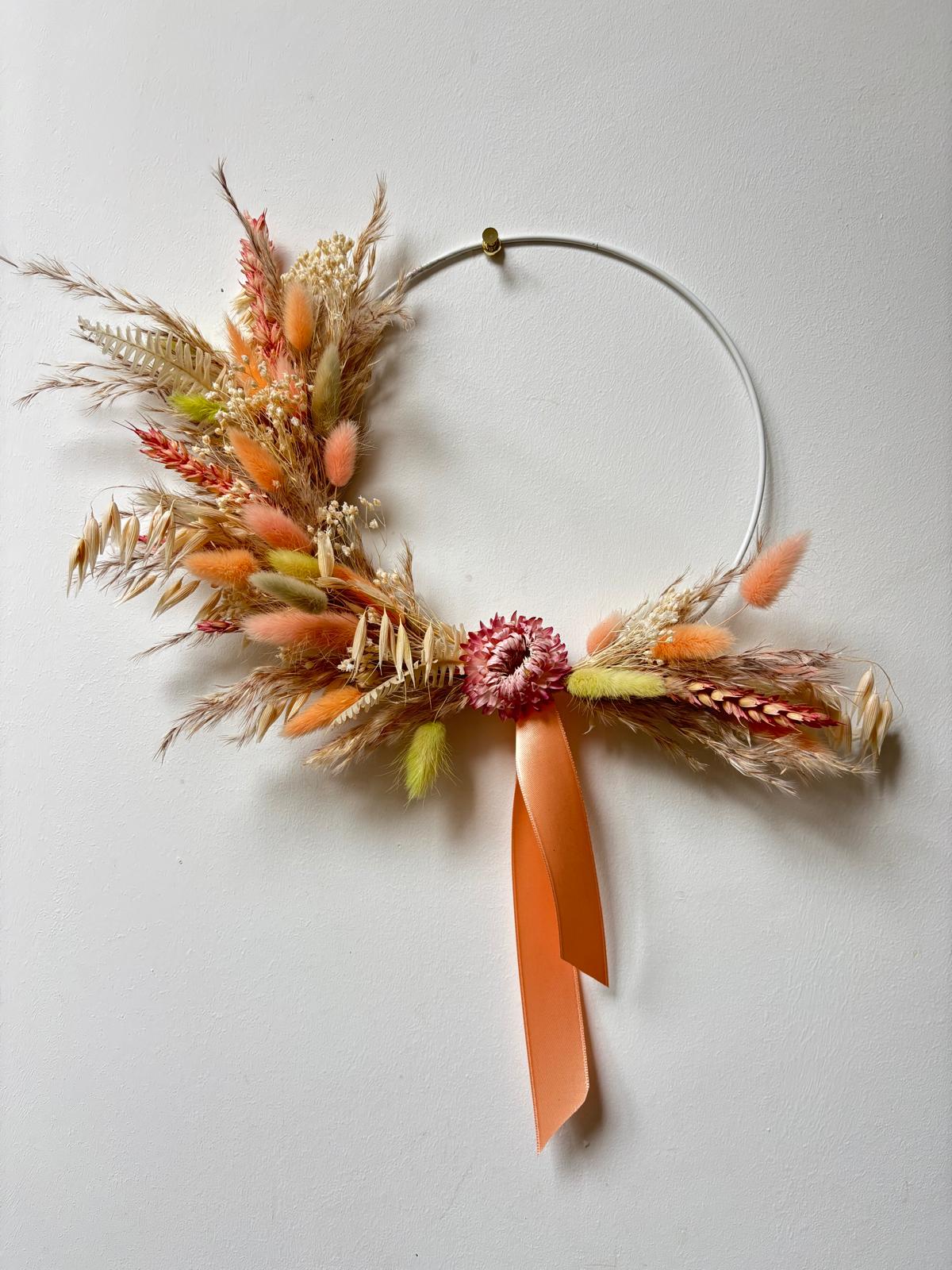 Inscrivez-vous pour composer vous-même votre couronne de fleurs séchées en diamètre 20 cm.