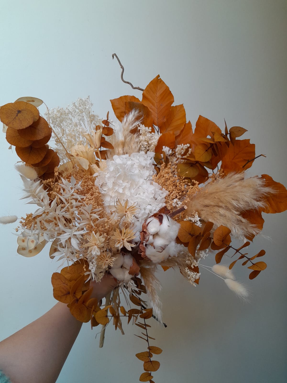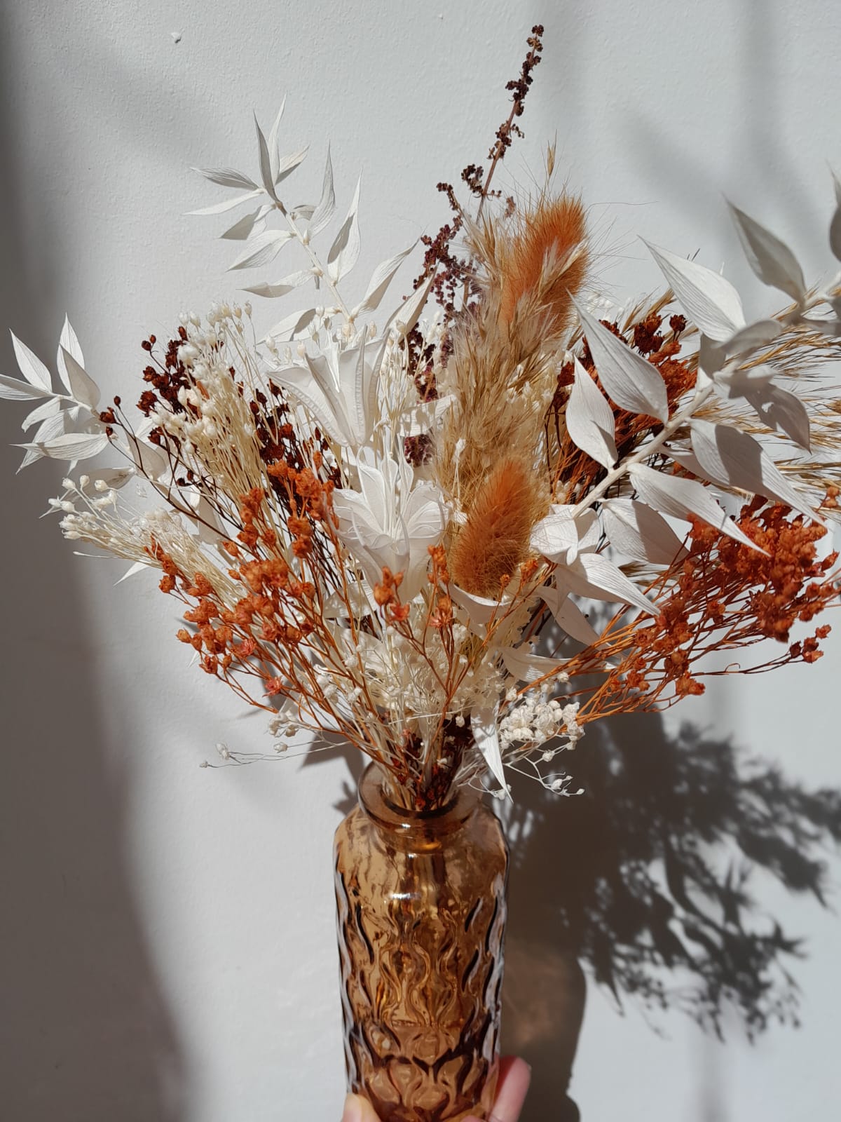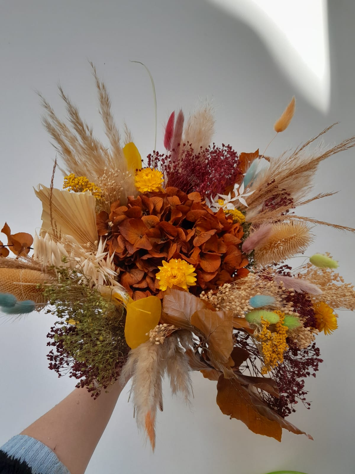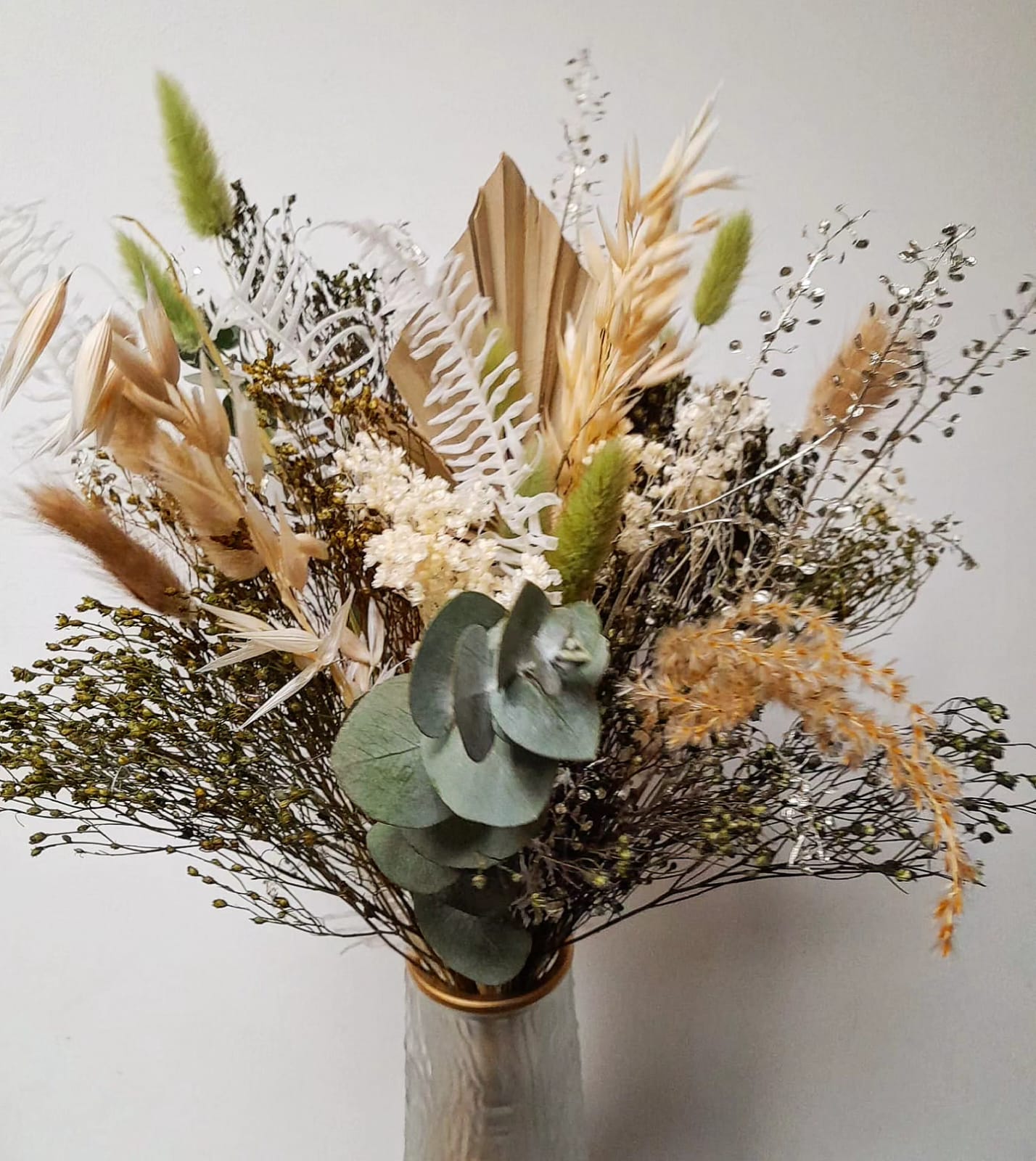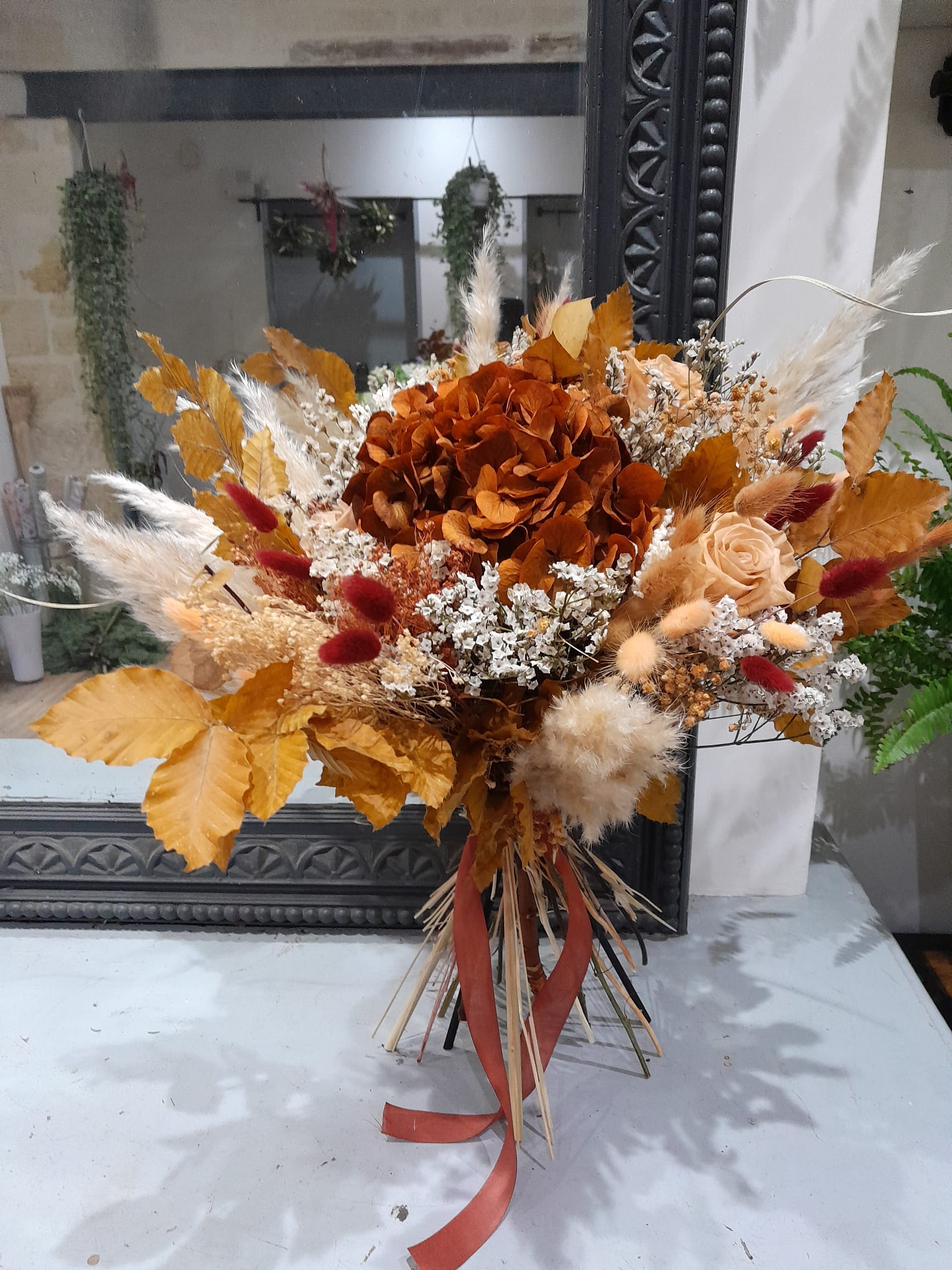 Chaque création est réalisée avec des fleurs séchées, sélectionnées selon nos arrivages. Photo non contractuelle: les teintes seront respectées, mais chaque bouquet est unique.
