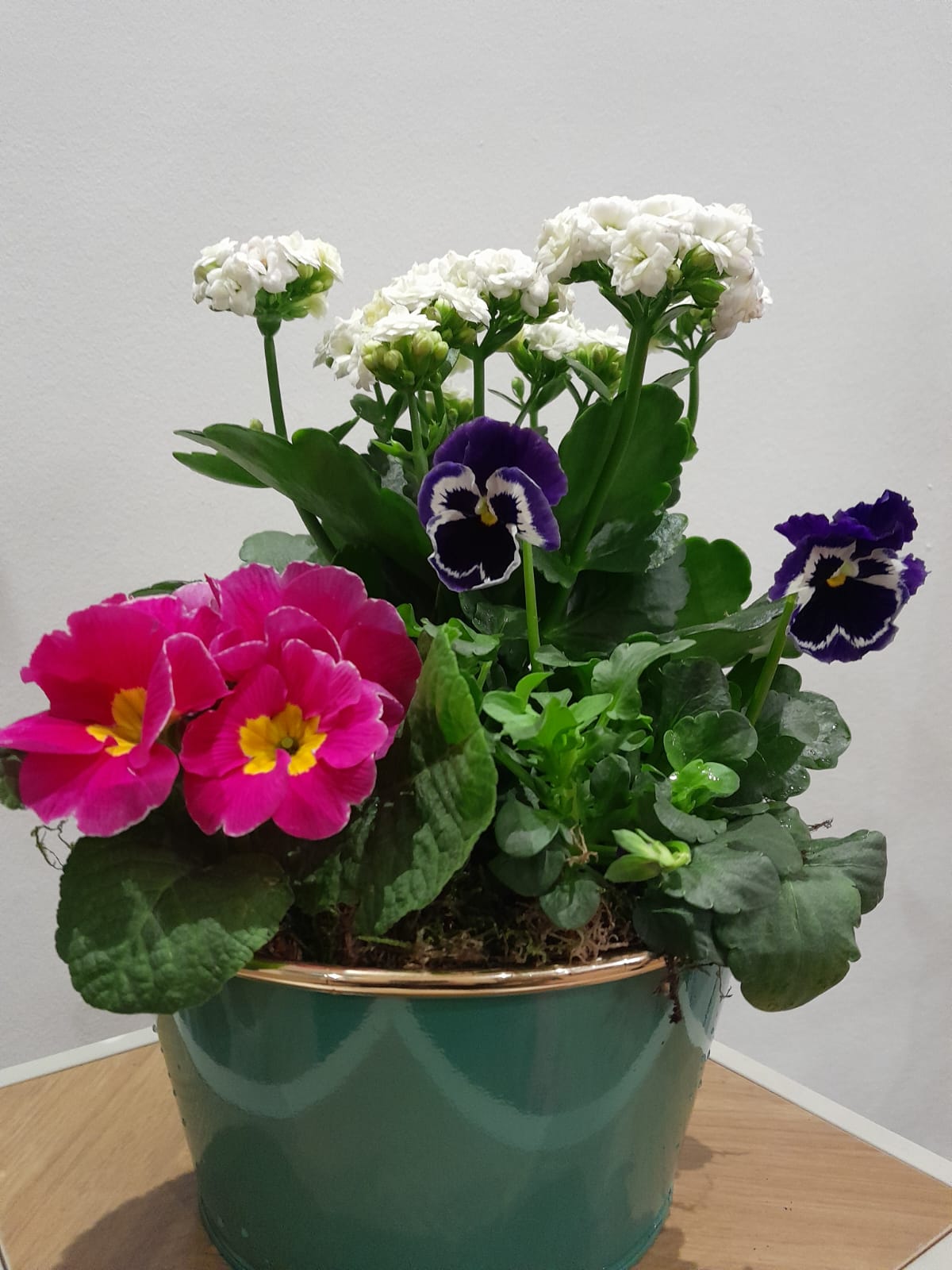Plantes de saison pour le cimetière dans une coupe plastique ou vannerie.