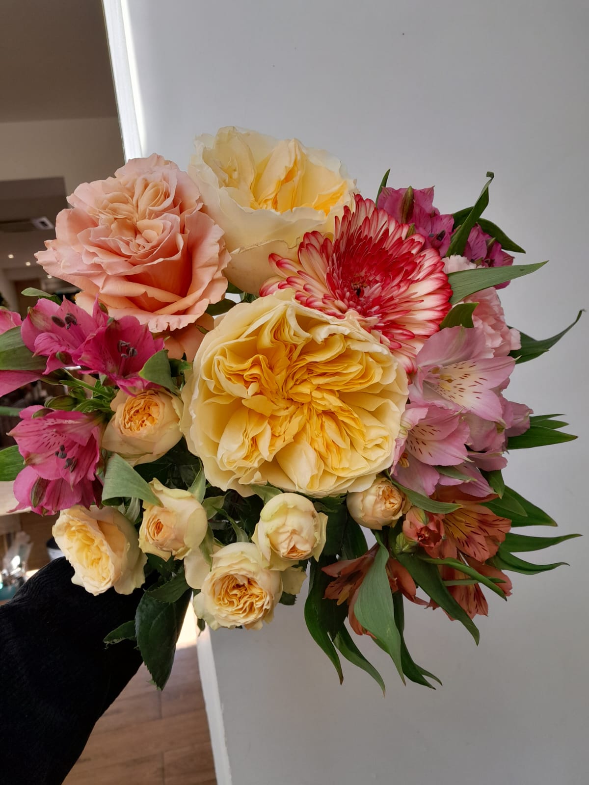 Chaque création est réalisée avec des fleurs fraîches, sélectionnées selon nos arrivages et la saisonnalité. Photo non contractuelle: les teintes seront respectées, mais chaque bouquet est unique.