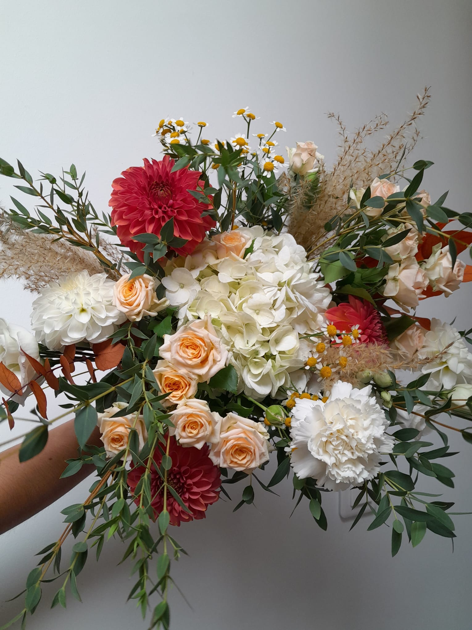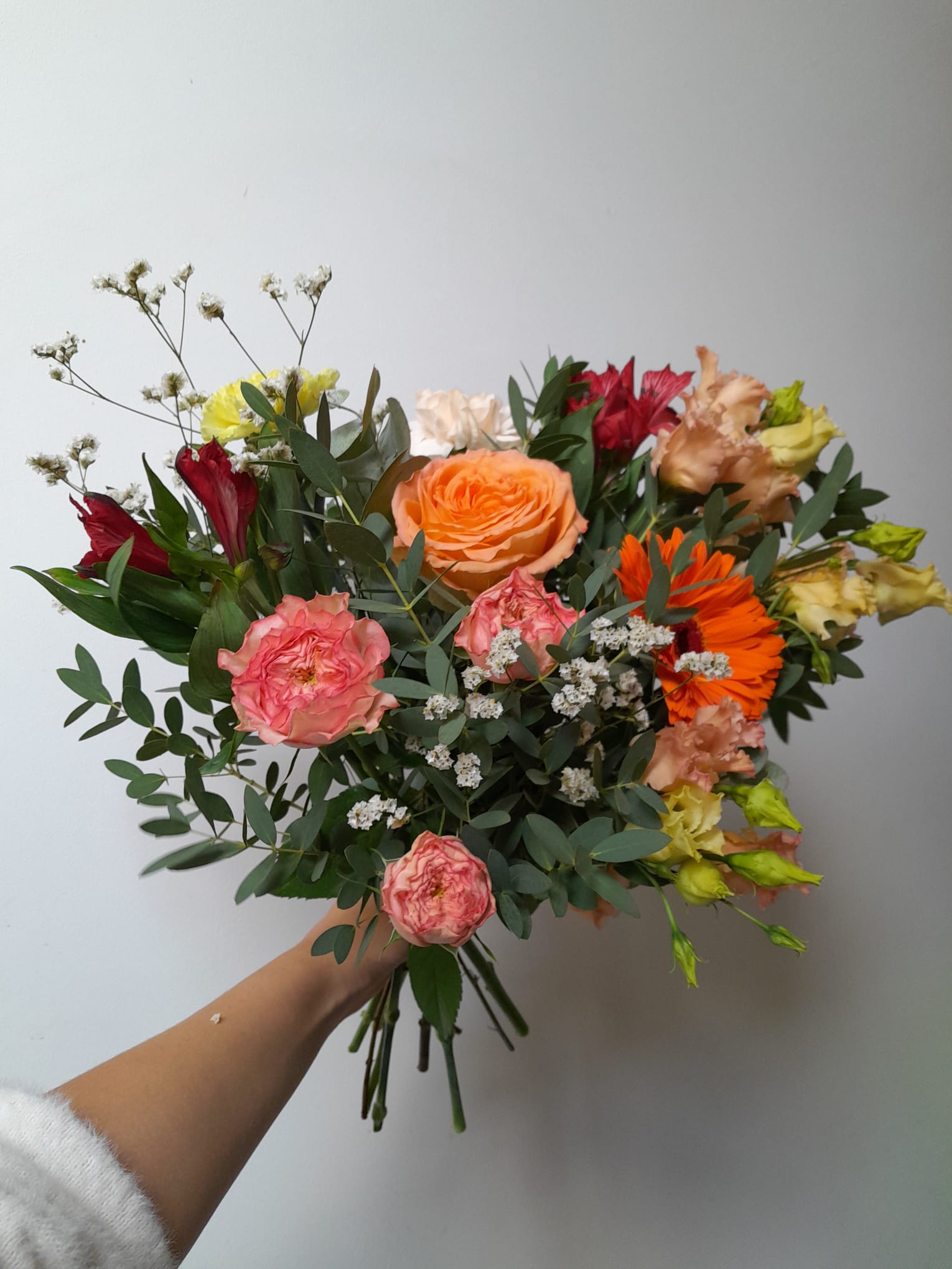 Chaque création est réalisée avec des fleurs fraîches, sélectionnées selon nos arrivages et la saisonnalité. Photo non contractuelle: les teintes seront respectées, mais chaque bouquet est unique.