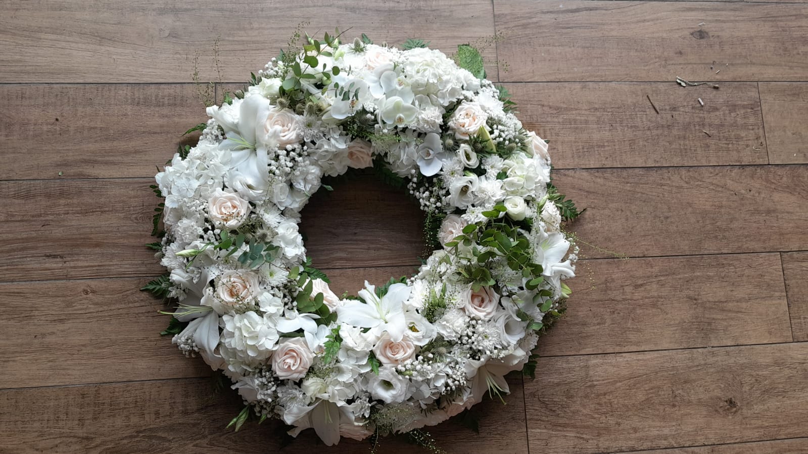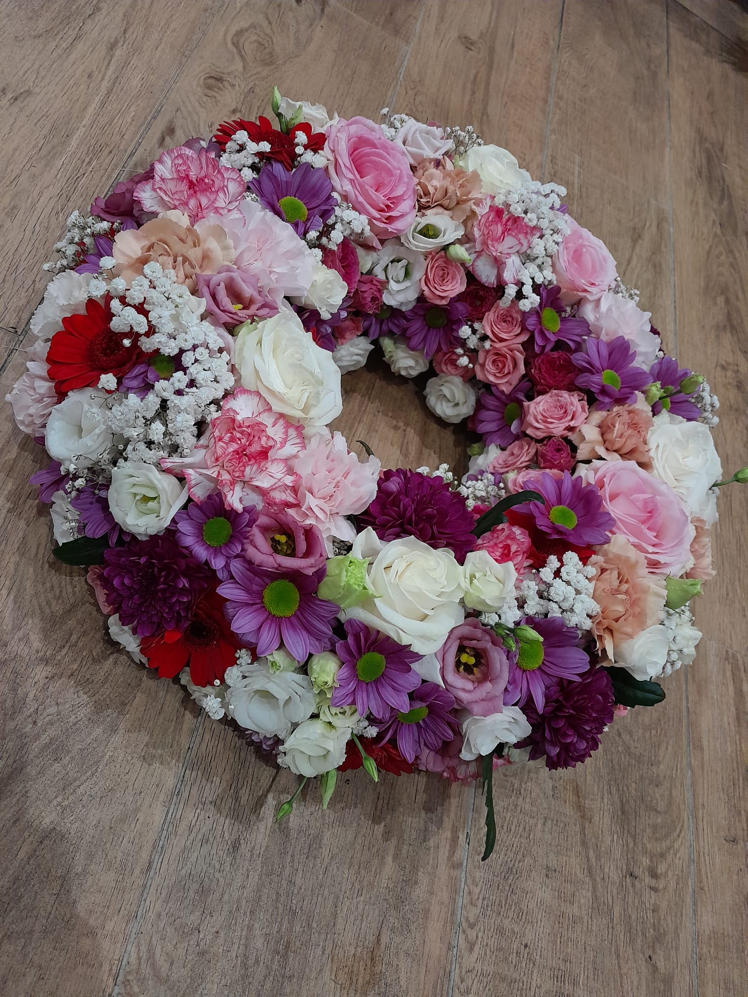 Couronne d'une taille de 50 cm de diamètre à partir de 450€. Si vous souhaitez une couronne de roses uniquement, le prix est de 600€ Couleurs au choix.